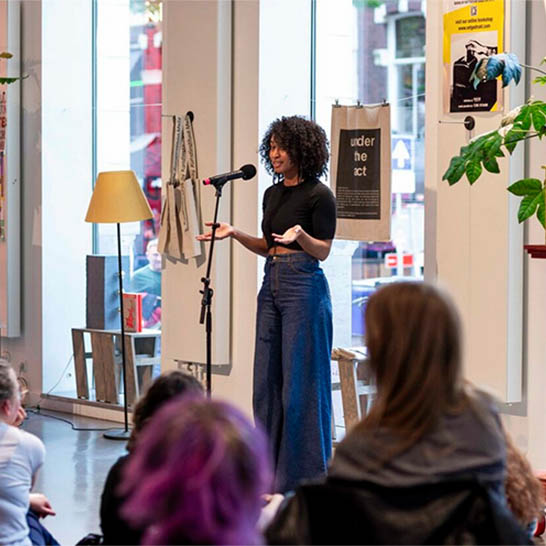 I Breathe, You Breathe Inspired by donna Kukama’s exhibition I Breathe, You Breath in Melly we’re going to place the focus on the theme of “Breathe”. In this exhibition donna brings together sound, videos, paintings, drawings, sculptures, and performance documentation in which she approaches history as a living and breathing body. The new edition of A Mic of One’s Own, is a series of collaborations between Kunstinstituut Melly and The Writer’s Guide (to the Galaxy).